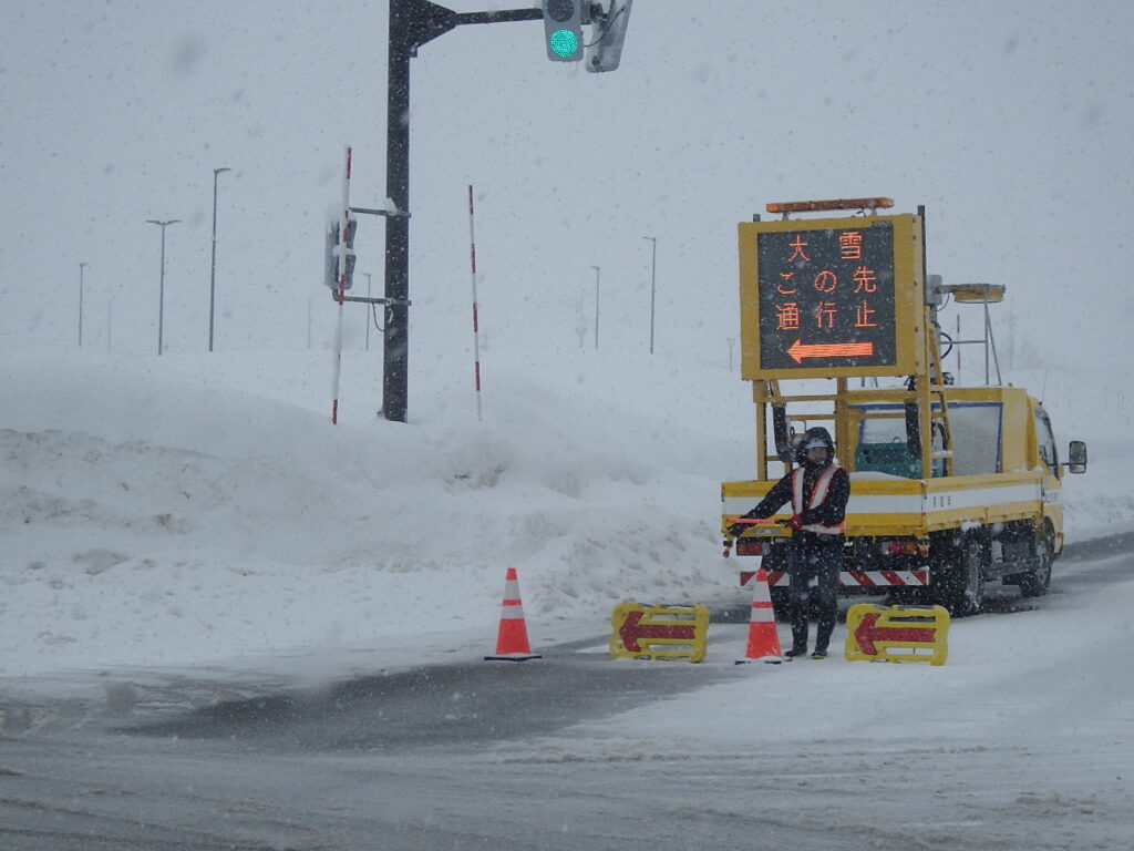 北陸パブリックメンテナンス株式会社 上越支店では、1月25日に道の駅あらいにて大雪による通行規制の対応にあたりました。